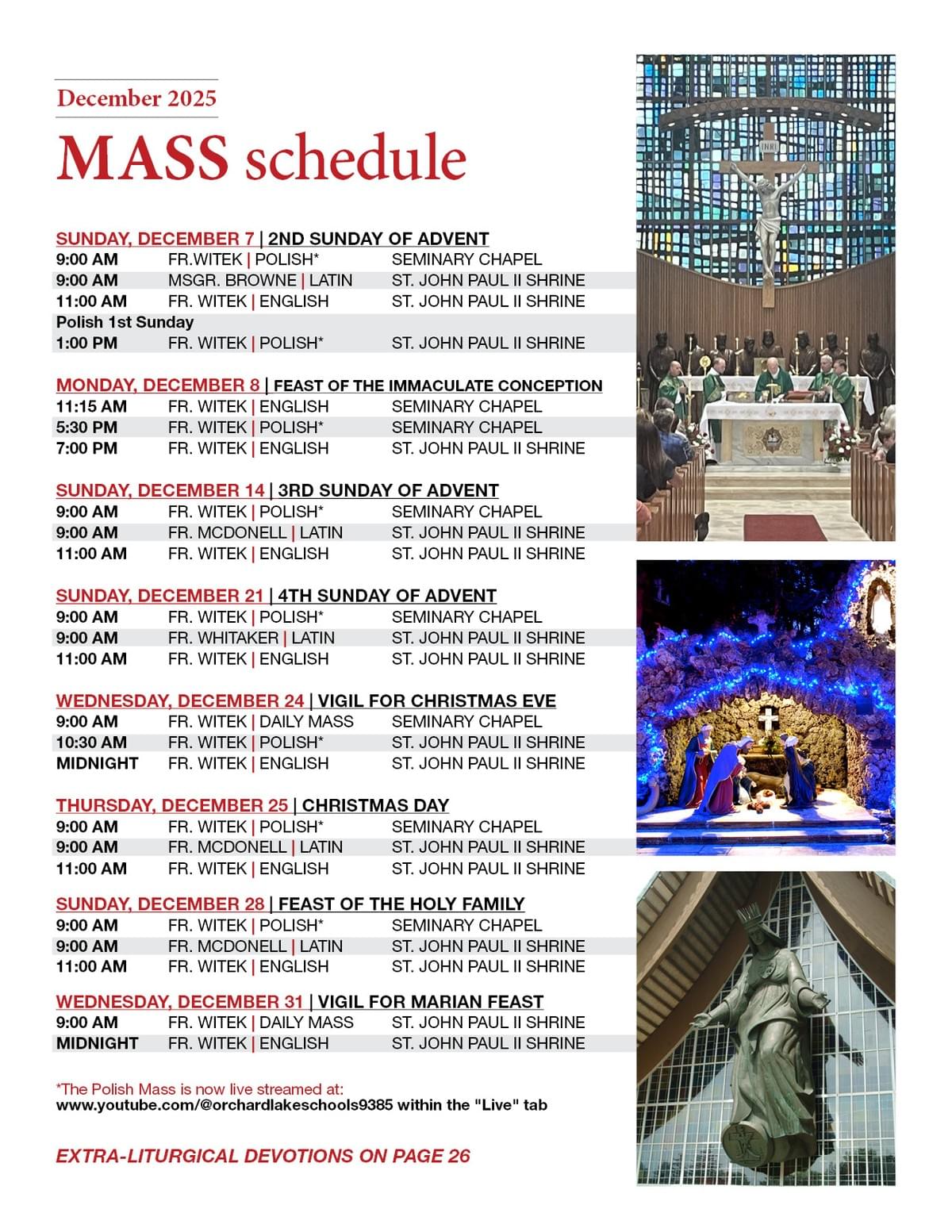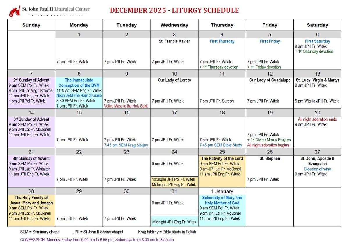 SEM = Seminary chapel - JPII = St John II Shrine chapel - Krąg biblijny = Bible study in Polish